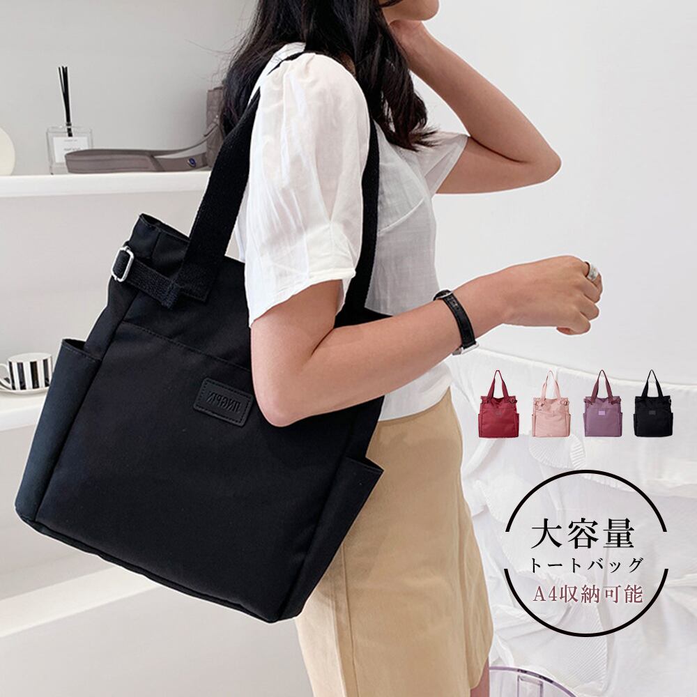 ナイロン A4サイズ対応 ハンドバッグ レディース マザーズバッグ 通勤 通学 手提げ サイドポケット スクエアカバン スグールバッグ 鞄 軽量 無地 多収納 ファスナーポケット